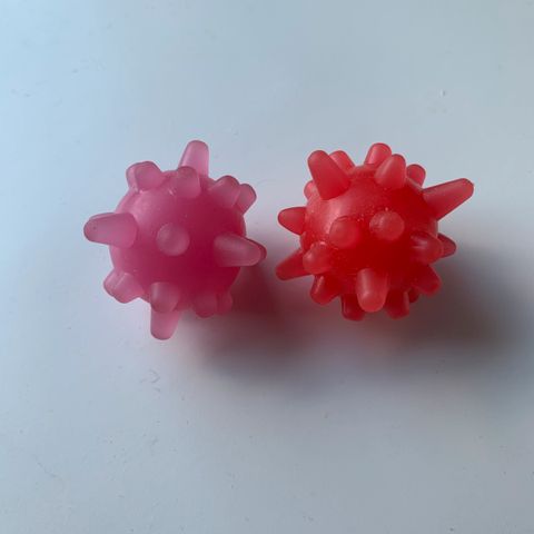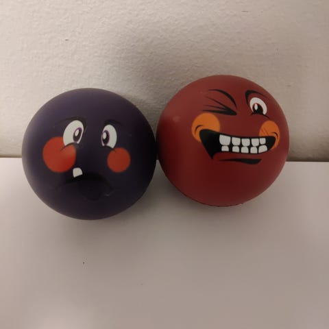 - stressi/puristelupallot. Miellyttävän tuntuista juuttia, joka antaa juuri sopivasti hiukan periksi. Kuvan pallojen halkaisija on 4,5cm, mutta isoon kouraan syntyvät kyllä suuremmatkin. Tämä koko on esim useimmille naisille juuri passeli