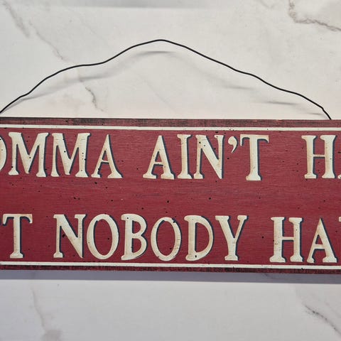 Myytävänä hyvässä kunnossa oleva kyltti tekstillä. Materiaalina pelti.