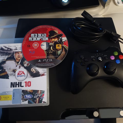 Toimiva konsoli, virta johto, USB johto ja ohjain.