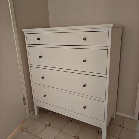 Myydään Songesand lipasto. Kaikki laatikot ehjiä ja toimivia. Lukuunottamatta pientä kolhua (kuva) kunto moitteeton.
