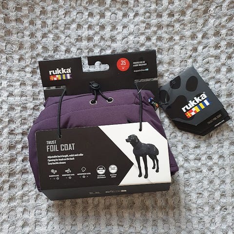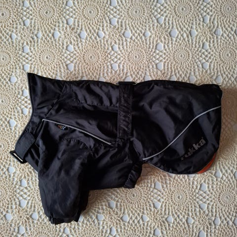 Uusi Rukka Blizzard koiran talvitakki, koko 35. Takissa on fleecevuori, tarrakiinnitys ja irroitettava huppu.