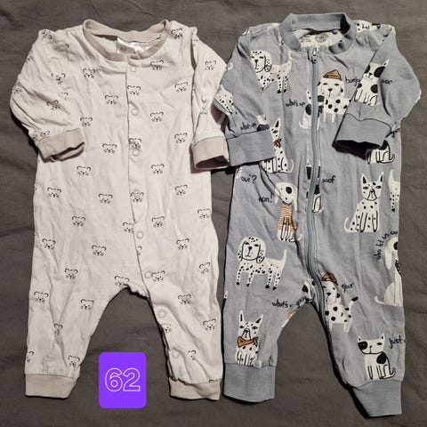 Myydään kuvan yöasut, molemmat Peuhu. Koko 62 on uusi ja koko 68 on hyväkuntoinen.