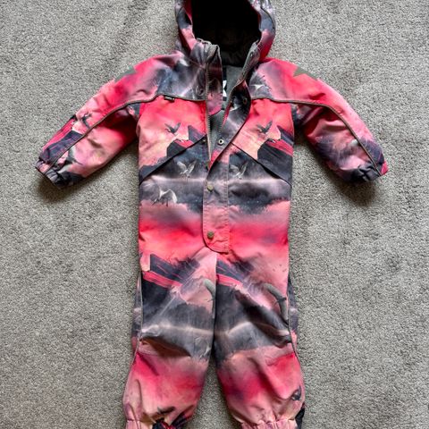 Siistikuntoinen, yhdellä lapsella käytetty Molo Polaris fur -toppahaalari. Hupun reunuskarva käyttämätön, tulee mukaan.