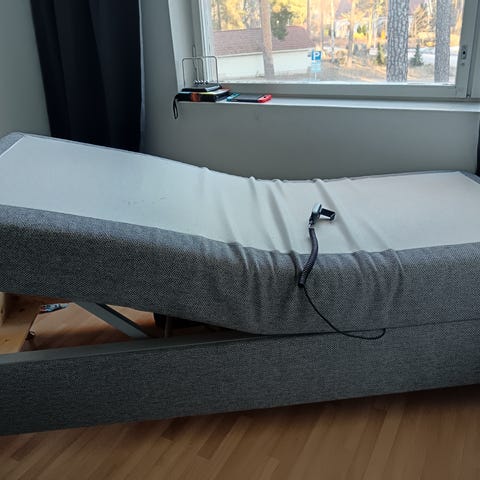 Moitteettomassa kunnossa oleva, vaalean harmaa Tempur promise adjustable moottorisänky 180*200cm medium patjoilla. Ollut muutaman vuoden käytössä.