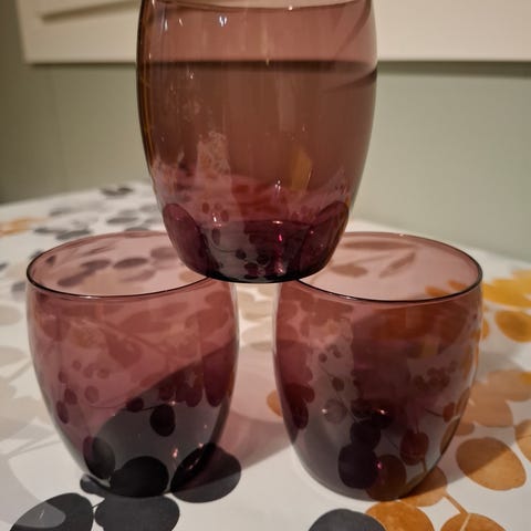 Siniset Iittala 2007-lasit. Suunnittelija Erkki Vesanto.