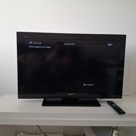 Teevee seinätelineellä ja kaukosäätimellä..tais olla 32 tuumainen. Tietokoneen näyttöjä.. dvd soittimia.. toimivuuksista en ole varma.