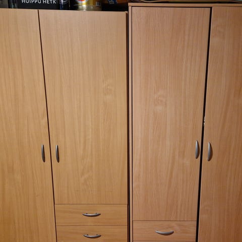 Siisti ja ehjä vaatekaappi. Jokaisessa kaapissa kuusi hyllyä. Nouto.