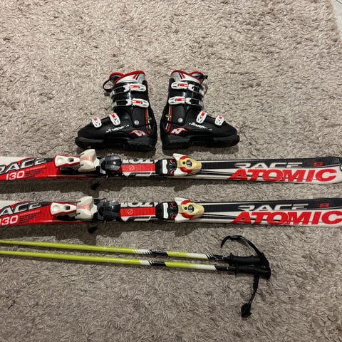 Nuorten sukset vapaana seuraavalle laskijalle. Sukset hyvässä kunnossa ja niillä ei ole laskettu muuta kuin rinteessä.