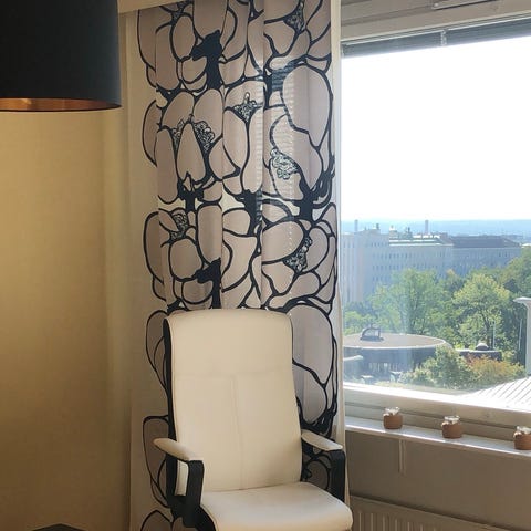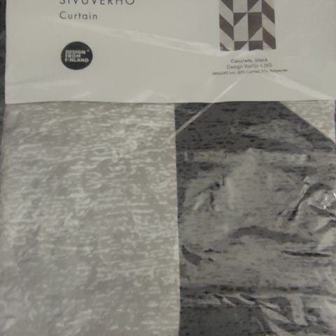 Myynnissä Vallila Makeba harmaa sivuverho. Kangas kaunis läpikuultava, yläreunassa rypytysnauha. Mitat 140x250cm.