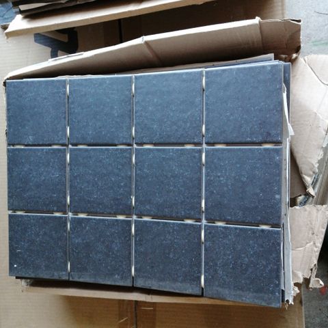 sininen kuvio laattasarja, Kuviointi on sinivalkoinen ja perinteinen. Laattojen takapuolella on valmistajan leima, pukkila.