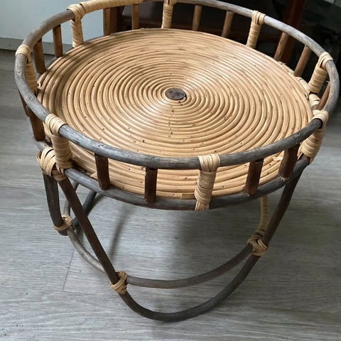 Kaunis tarjoiluvaunu rottinkipöytä