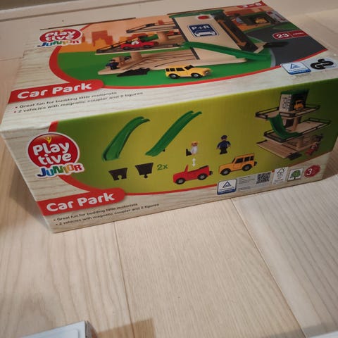 Uusi parkkitalo, sisältää pikkuautot. Omassa paketissaan. Parkkitalo sisältää viisi kerrosta, joissa autot voivat parkkeerata ja liikkua. Mukana tulee neljä erilaista autoa.