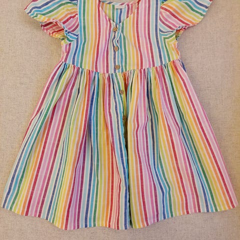 Ihana kellohelmamekko, jossa värikäs raidoitus. Koko 110 cm. Uudenveroinen, käyttämättömän näköinen. Päävärit keltainen, lila, sininen ja punainen. Sopii monille vartalomalleille ja mekossa on tilaa liikkua. Myynnissä Lohjalla, mutta kulkeutuu omien menojen mukaan Kamppiin, Espoon Ikealle tai Espoon keskukseen ilman postikuluja.