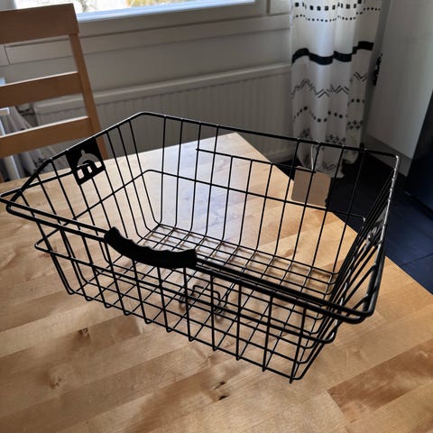 Uusi, käyttämätön tavarakori polkupyörän eteen