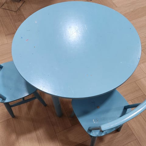 Myydään kuvanmukainen pienten lastennolytä ja kaksi tuolia. Jotain pieniä kulumia löytyy (ks. esim viimeinen kuva), mutta yleisilme vielä siisti. Sisältää säilytystilaa pöytäkansien alla.
