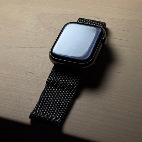 Apple Watch Series 8 ruostumaton teräs versio, sisältäen GPS- ja Cellular-yhteydet. Kello kestää merkittävästi enemmän iskuja kuin alumiiniversio ja tuntuu kädessä laadukkaalta.