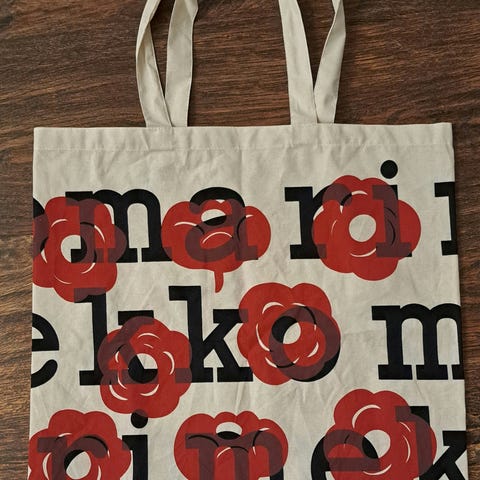 Myydään uusi Marimekon logokassi.