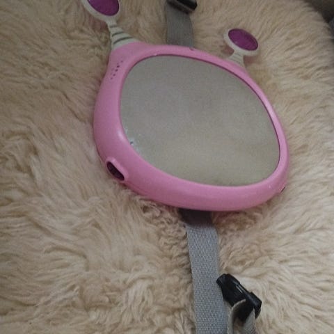 Lasten turvapeili, joka kiinnitetään auton takaistuimen niskatukeen. Peilissä on musta kehys ja se mahdollistaa lapsen seuraamisen takapenkiltä ajon aikana. Peili on erittäin kupera, joten siinä näkyy laajennettu näkymä takapenkille. Helppo tappikiinnitys.