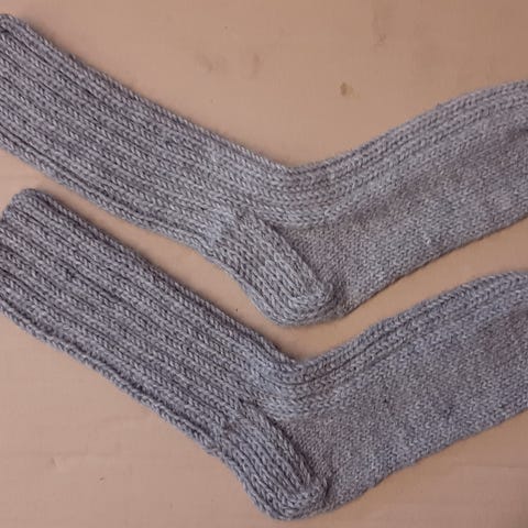 Itse neulotut miesten villasukat Novitan 7 veljestä langasta. (12) Tumma harmaa 048. Koko n43, terä n 25 cm. Hintaan lisää toimituskulut.