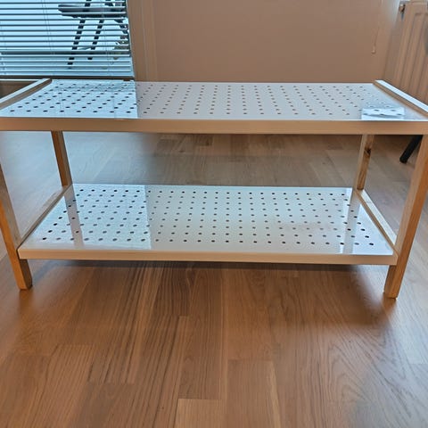 Kenkäteline kolmella tasolla. Mitat 40x27x77. Puurimaa. Siistissä kunnossa.