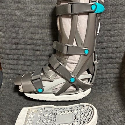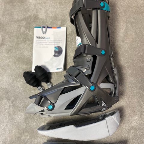 Vacoped tyhjiöortoosi. Koko S. Mukana kaikki tarvittavat osat: 2 konepestävää pehmustetta, tyhjiöpakkaus, pumppu, 2 eri korkuista pohjaa, avain sallitun liikelaajuden säätöön ja käyttöohjeet.