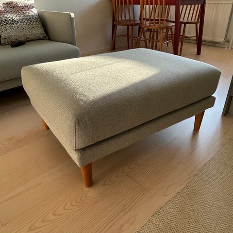 Käytännössä uudenveroinen Hakolan Lazy-sarjan rahi soft-kankaalla. Ollut erittäin vähäisellä käytöllä. Savuton ja eläimetön koti.