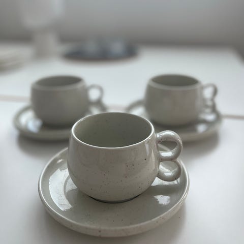 6 kpl kahvikuppeja aluslautasineen + kermanekka. Kuin uudet. Koko setti 30€