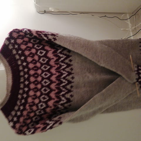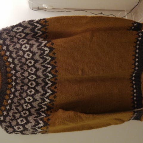 Muutaman kerran käytetty kaunis islantilaisneule, neulottu 100% islantilaisesta villasta. Pitempi malli, korkeampi kaulus. Koko noin S-M, tarkemmat mitat kuvassa.