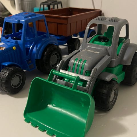 Metalliautoja, traktori ja dumper