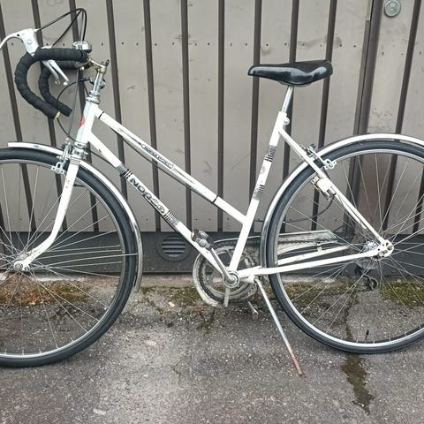 Nopsa pyörä heti ajettavassa kunnossa takatarakalla on kori. Lokasuoja on tarkoituksella takapyörässä lyhennetty