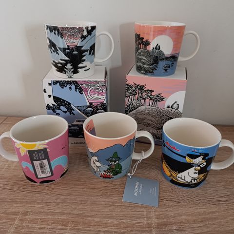 Kuvanmukaiset yhdeksän muumi minimukia, jotka kaikki ovat erinomaisessa, aivan uudenveroisessa kunnossa. Mukit ovat neljästä eri sarjasta. Myyn vain kaikki yhdessä tähän edulliseen yhteishintaan (yhden mukin hinnaksi tulee vain vähän yli kaksi euroa) ja voin lähettää Postin S-pakettina (8,90 euroa). Maksu miellään MobilePaylla, mutta myös maksu tilille ja noudettaessa käteinen käy. En käytä ToriDiiliä.