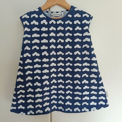 Myydään Marimekon kaunis paitamekko koossa 80/86. Erittäin nätti ja hyväkuntoinen seuraavalle. Säilytyksestä ryppyinen, en havaitse mitään muita moitteita.