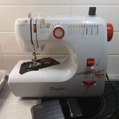 Birgitta Standard Ompelukone, värit valkoinen ja vaaleanpunainen. Sisältää useita ompeluohjelmia, helppokäyttöinen malli. Mukana virtalähde ja käyttöohje.