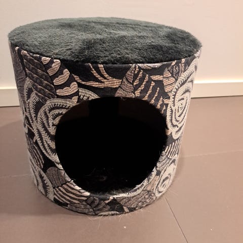 Kissan raapimispuu, jossa on useita tasoja ja pesäpaikkoja. Paljon kiipeilty kuten kuvasta näkyy, puhdistus jää ostajalle.