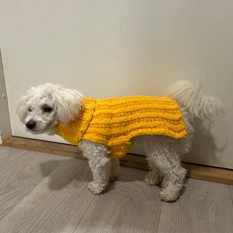 Myydään vaaleanpunainen neule pennulle tai pienelle koiralle. Koko: 25 cm.