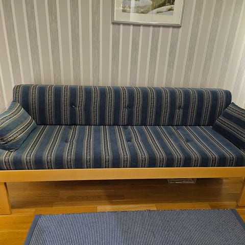 Levitettävä laveri, patjat ja vuodevaatelaatikko. Sijainti Lehmossa. Valmiiksi kärryssä, siirtyy pienen matkan kohteeseen.