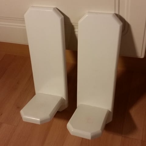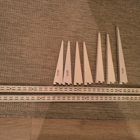 Mustat metalliset hyllynkannattimet 4 kpl eli saa kahden hyllyn tehtyä. Kunto hyvä, ei suurempia naarmuja tai kolhuja.