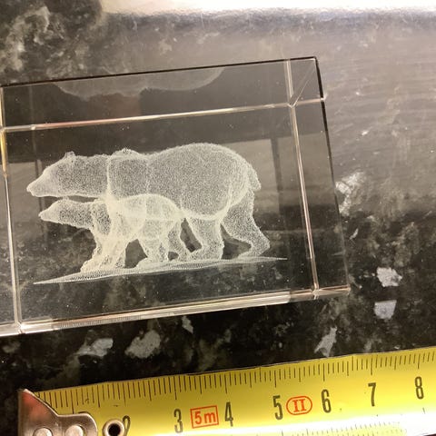 Lasifiguuri istuva karhu. Mäntsälän Lasisepät. Korkeus noin 10cm.