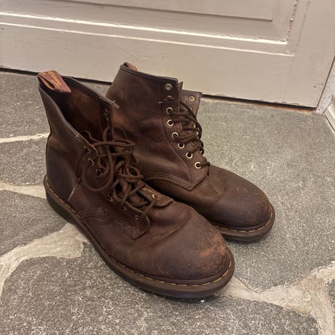 Uudenkarheat, kerran käytetyt aidot Dr. Martens mono black koossa 44. Vastaavat kokoaan. Pieniä painaumia käyttökerrasta, pohjat kuin uudet jne. Näitä ei tarvitse ajaa sisään työllä ja tuskalla; ovat sitä aavistuksen pehmeämpää Martens-nahkaa jonka ansiosta ovat aidosti jo alussa hyvät. Pakettihinta posteineen 80€