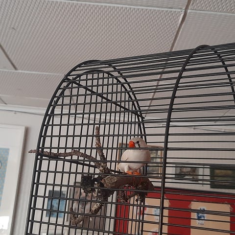 Myydään seeprapeippo + häkki.