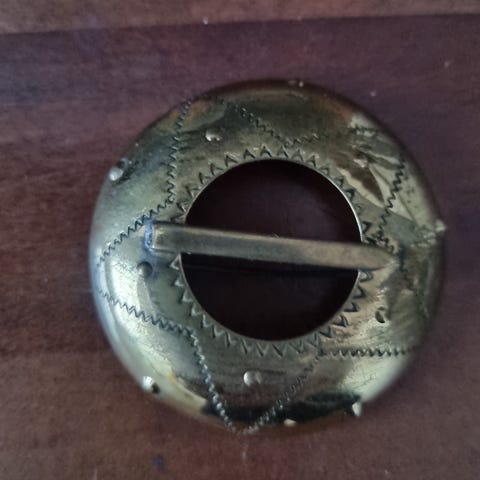 Myydään siisti ja ehjä, käyttämätön huivineula maatuskoilla. Leveys 8 cm. Voin postittaa.
