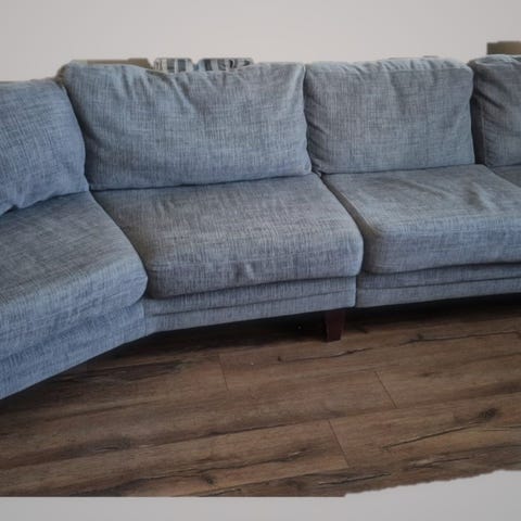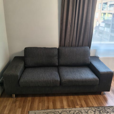 2-3 hengen istuttava sohva, ollut käytössä noin 4 vuotta. Muuten hyvässä kunnossa, mutta löytyy muutama repeymä kulmassa sekä tyynyissä kansas on ohentunut.