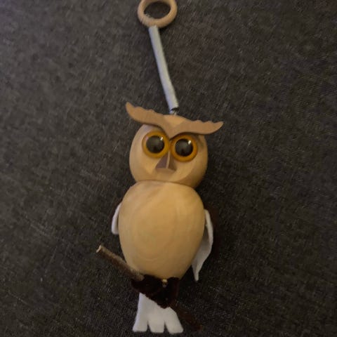 Marmoripöllö (koristepöllö, lintupatsas, lasilintu). Korkeus 13cm. Painava.