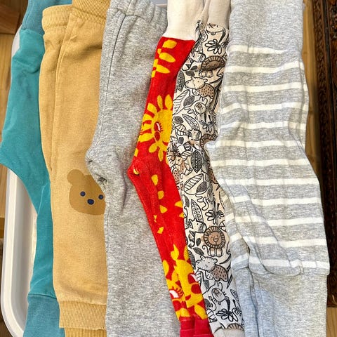 Vohvelikankaiset lasten housut, koko 86, väriltään sininen. Valmistettu puuvillasta.