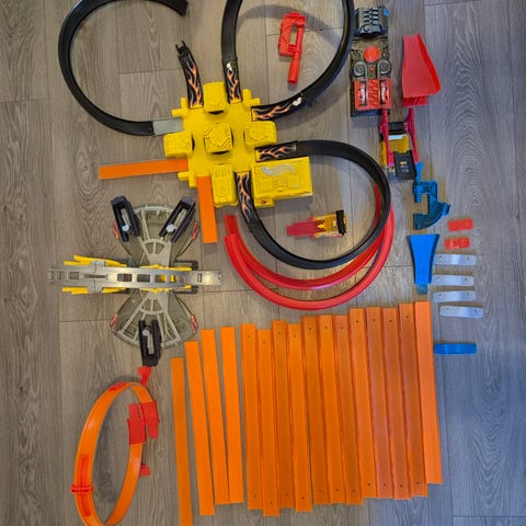 Sekalainen kuvan mukaisen setti Hot Wheels ratojen osia.