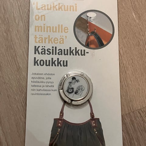 Metallinen irrallinen laukkuhaka esim. pöytään.