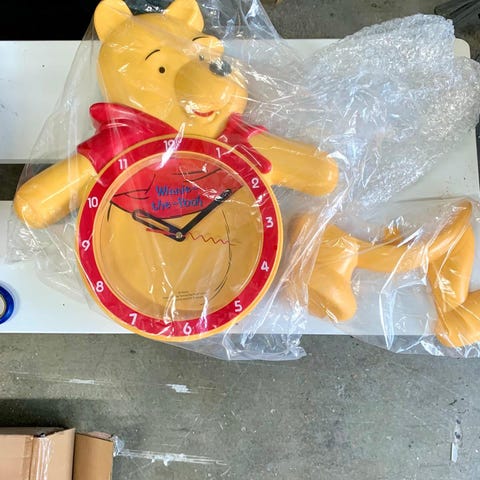 Avaamaton, paketissa oleva Nalle Puh seinäkello. Halkaisija 25 cm