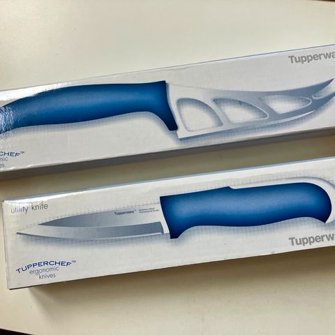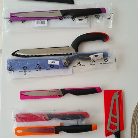 3 kappaletta Tupperwaren yleisveitsiä. 1.- Pieni yleisveitsi leikkasmiseen ja viipalointiin.