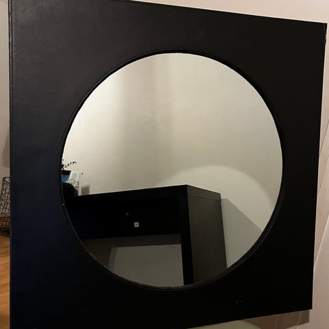 Pyöreä mustakehyksinen peili