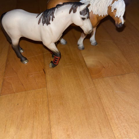 Myydään Schleich 2 varsaa, maitopullo ja hedelmät. Varsat saaneet hieman kulumaa, mutta vielä hyvässä kunnossa leikkeihin. Hp 15.00 euroa/tarjous.